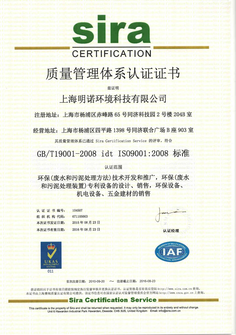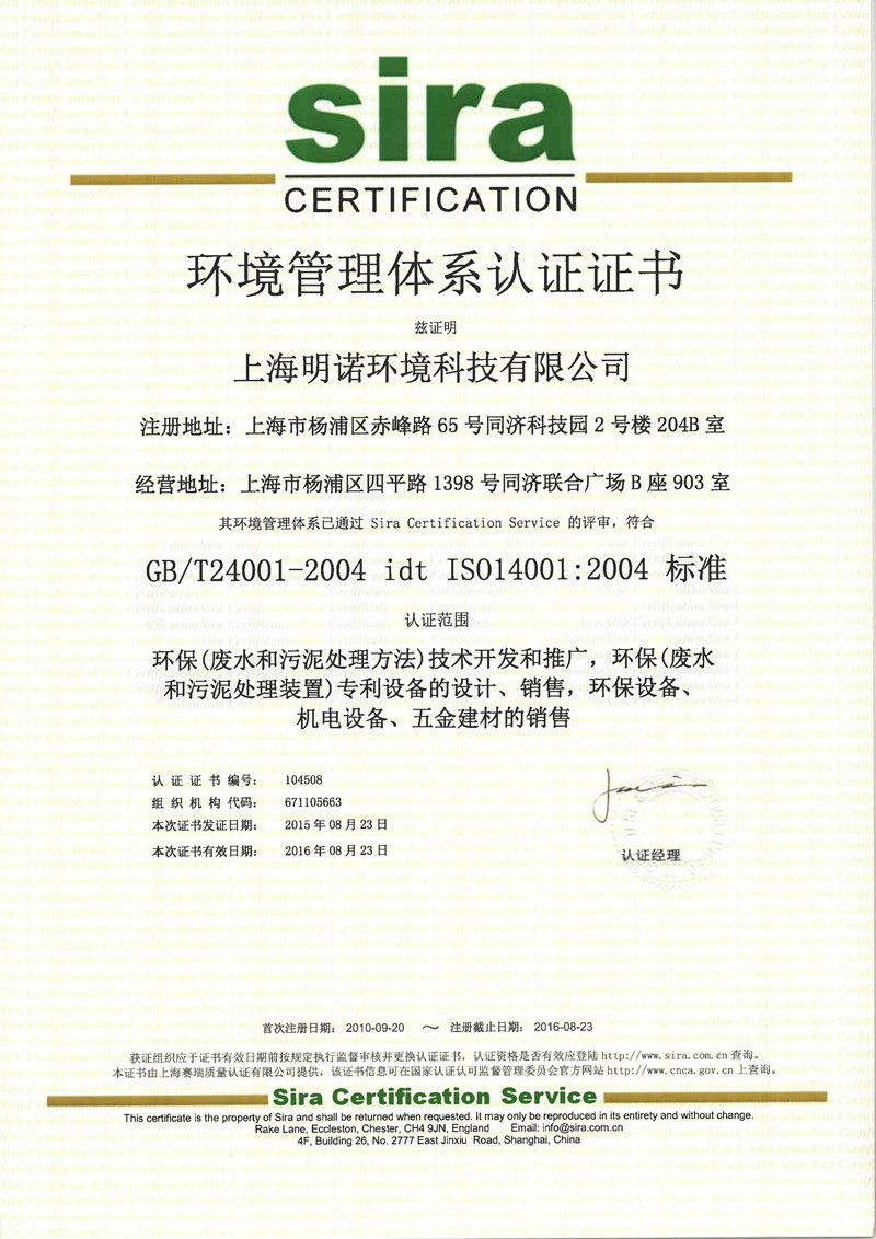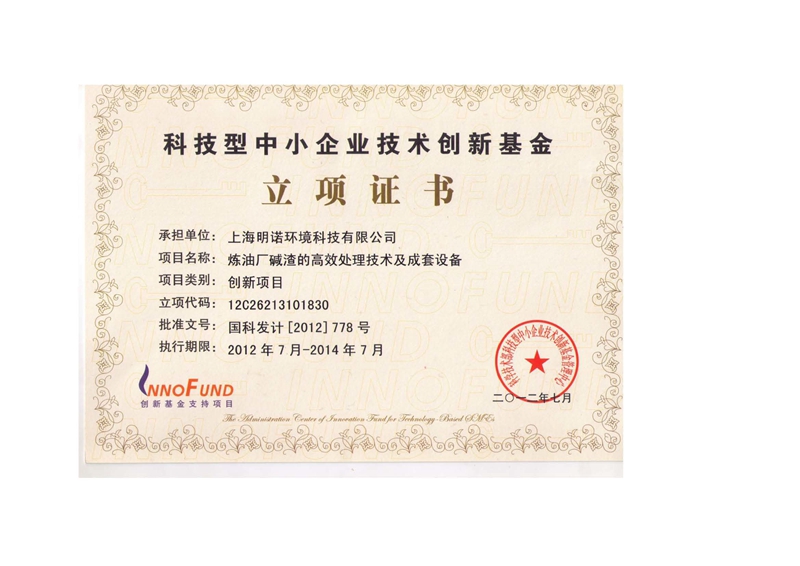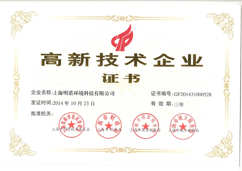 明諾環(huán)境被認定為“國家級高新技術(shù)企業(yè)”,并受到國家科技部創(chuàng )新基金支持。公司已經(jīng)通過(guò)ISO9001:2008質(zhì)量管理體系認證和ISO14001:2004環(huán)境管理體系認證。