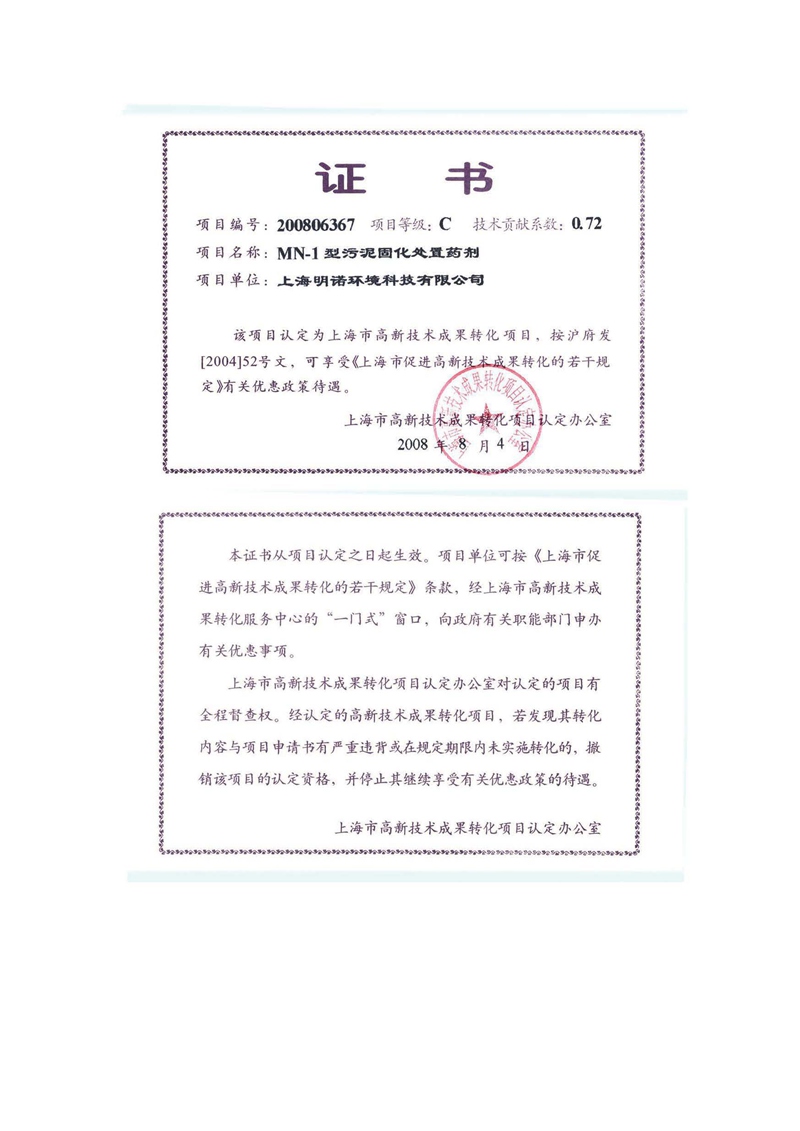 上海市高新技術(shù)成果轉化項目證書(shū)