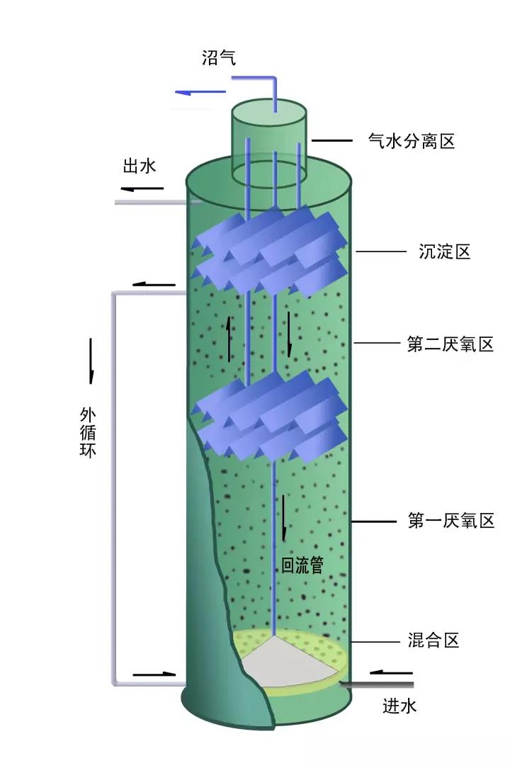 厭氧發(fā)酵池采用UASB、AAFEB或上流式厭氧膨脹床反應器,當保持中溫厭氧條件時(shí),廢水停留時(shí)間8-12小時(shí),COD去除率可達60%-75%。而在常溫條件下,其去除率會(huì )降低,此時(shí)應適當增加廢水停留時(shí)間。當洗毛廢水量較大時(shí),產(chǎn)生的沼氣可以收集利用,否則將采取高空排放。
