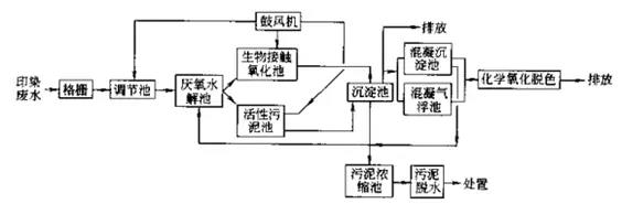 厭氧-好氧-生物炭接觸:對于CODCr為800~1000mg/L的印染廢水,使用該處理工藝,處理效果完全可以達到國家排放標準,再稍加進(jìn)一步處理還可回用,系統的污泥趨于自身平衡。目前已有多家生產(chǎn)廠(chǎng)采用該流程,運轉時(shí)間最長(cháng)的達5年以上,處理效果穩定,而且從未外排污泥,也沒(méi)發(fā)現厭氧池內污泥過(guò)度增長(cháng)。
