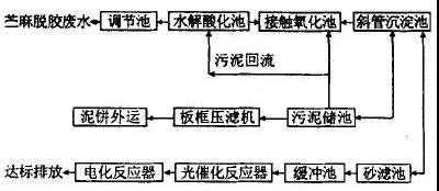 (1)麻脫膠廢水處理,其典型流程見(jiàn)下圖
