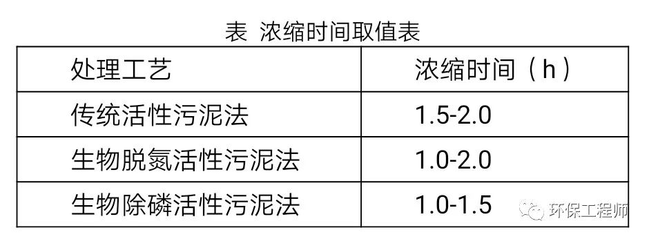 濃縮時(shí)間的確定對二沉池的計算特別重要,設計可根據下表經(jīng)驗數據選?。?/span>