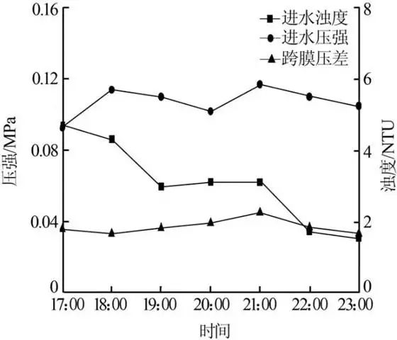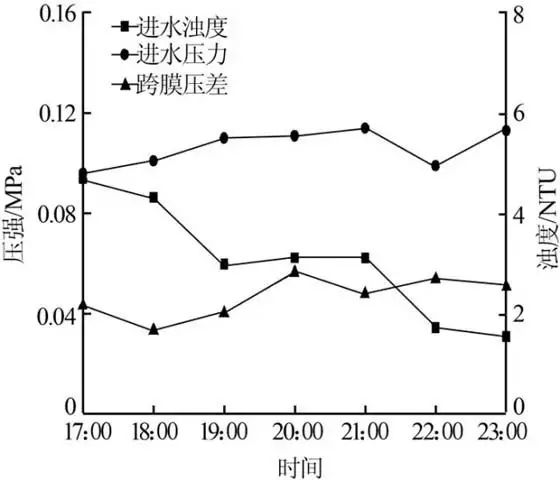 (4)超濾運行過(guò)程中應密切監督其進(jìn)出水濁度、壓強及跨膜壓差的變化,若出現異常應及時(shí)進(jìn)行分析并解決。