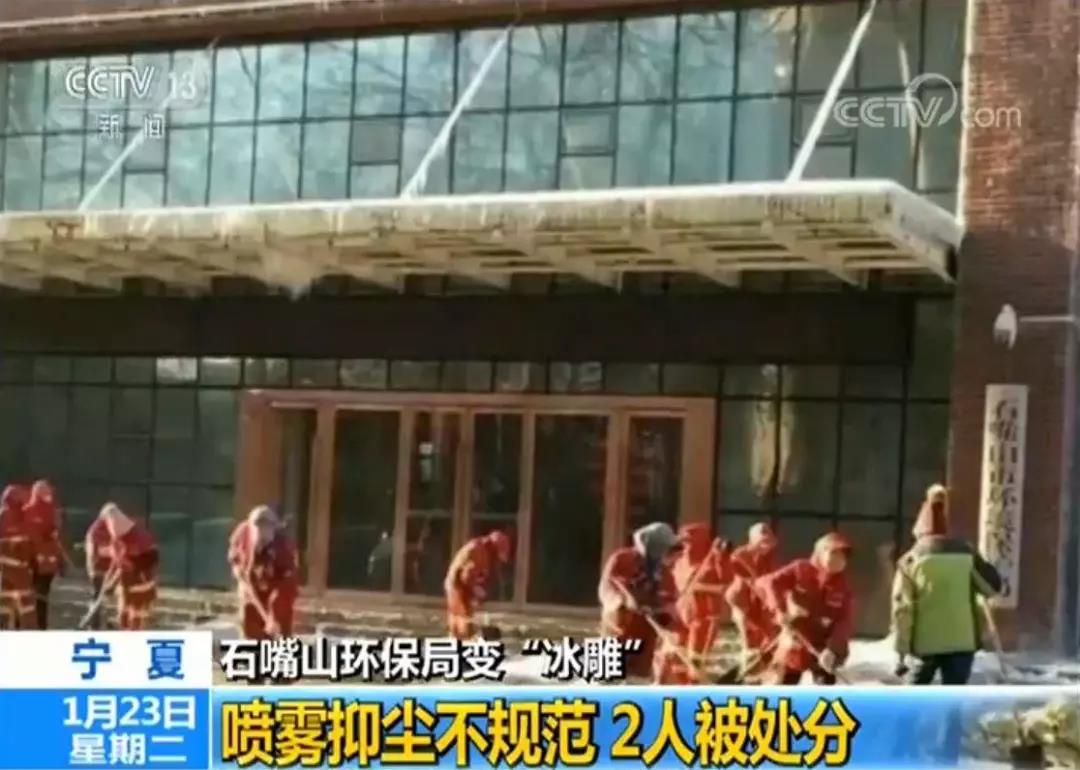 然而,這座冰雕既不是自然現象,也不是藝術(shù)作品,而是石嘴山市環(huán)保局用炮霧車(chē) “改善”環(huán)境監測數據鬧出的荒誕一幕。