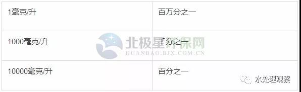 一般來(lái)說(shuō),廢水中的有機物質(zhì)和無(wú)機物質(zhì)的含量是很小很小的,如果用百分濃度或其他濃度來(lái)表示則太麻煩太不方便了,譬如一噸廢水中往往只有幾克、幾十克、幾百克甚至幾千克污染物質(zhì),其單位即為克/噸(g/T),如將噸換算成升即為毫克/升(mg/L)。計算時(shí)可參考下表?yè)Q算: