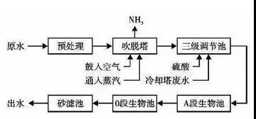 在堿性條件下,利用氨氮的氣相濃度和液相濃度之間的氣液平衡關(guān)系進(jìn)行分離的一種方法。一般認為吹脫效率與溫度、pH、氣液比有關(guān)。