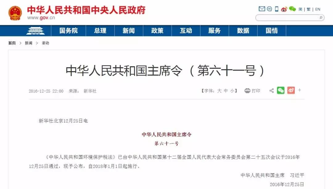 1月1日,我國第一部推進(jìn)生態(tài)文明建設的單行稅法 ——《環(huán)境保護稅法》正式實(shí)施,這標志著(zhù)環(huán)保費改稅正式完成,同時(shí)意味著(zhù)環(huán)保稅的開(kāi)征標志著(zhù)我國的環(huán)保事業(yè)和經(jīng)濟發(fā)展進(jìn)入了全新的階段,生態(tài)文明體制建設邁上了新的臺階。