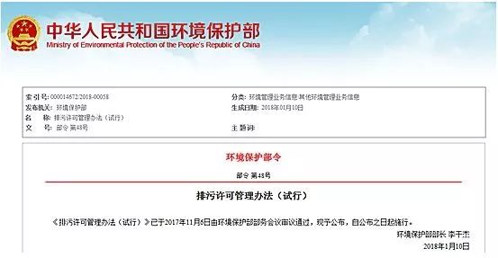 1月17日,環(huán)保部印發(fā)了《排污許可管理辦法(試行)》,標志著(zhù)我國排污許可制度的第一個(gè)部門(mén)規章正式出臺。
